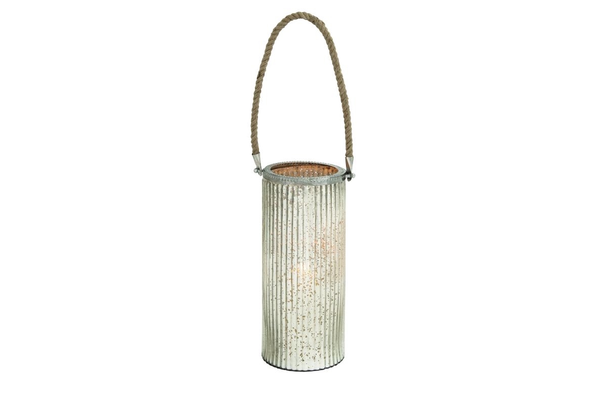Mercury Glass Lantern with rope.