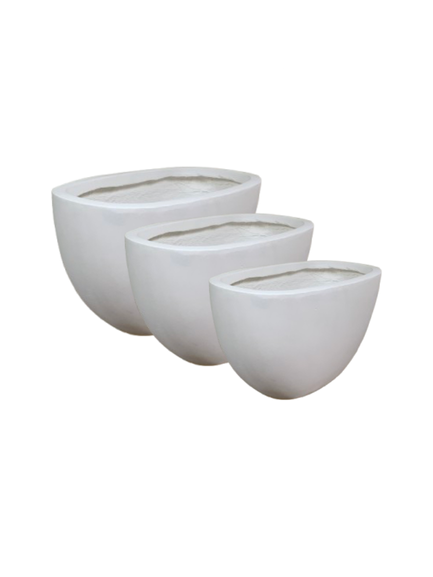 The white oval flowerpot (Set of 3) is a refined blend of form and function, designed to elevate the presence of any plant while seamlessly integrating into modern and minimalist interiors or outdoor environments. With its smooth, elongated oval shape, this flowerpot offers a fresh alternative to traditional round or square pots, creating a soft, elegant visual that complements a wide range of plant varieties — from lush leafy greens to delicate florals and sculptural succulents.