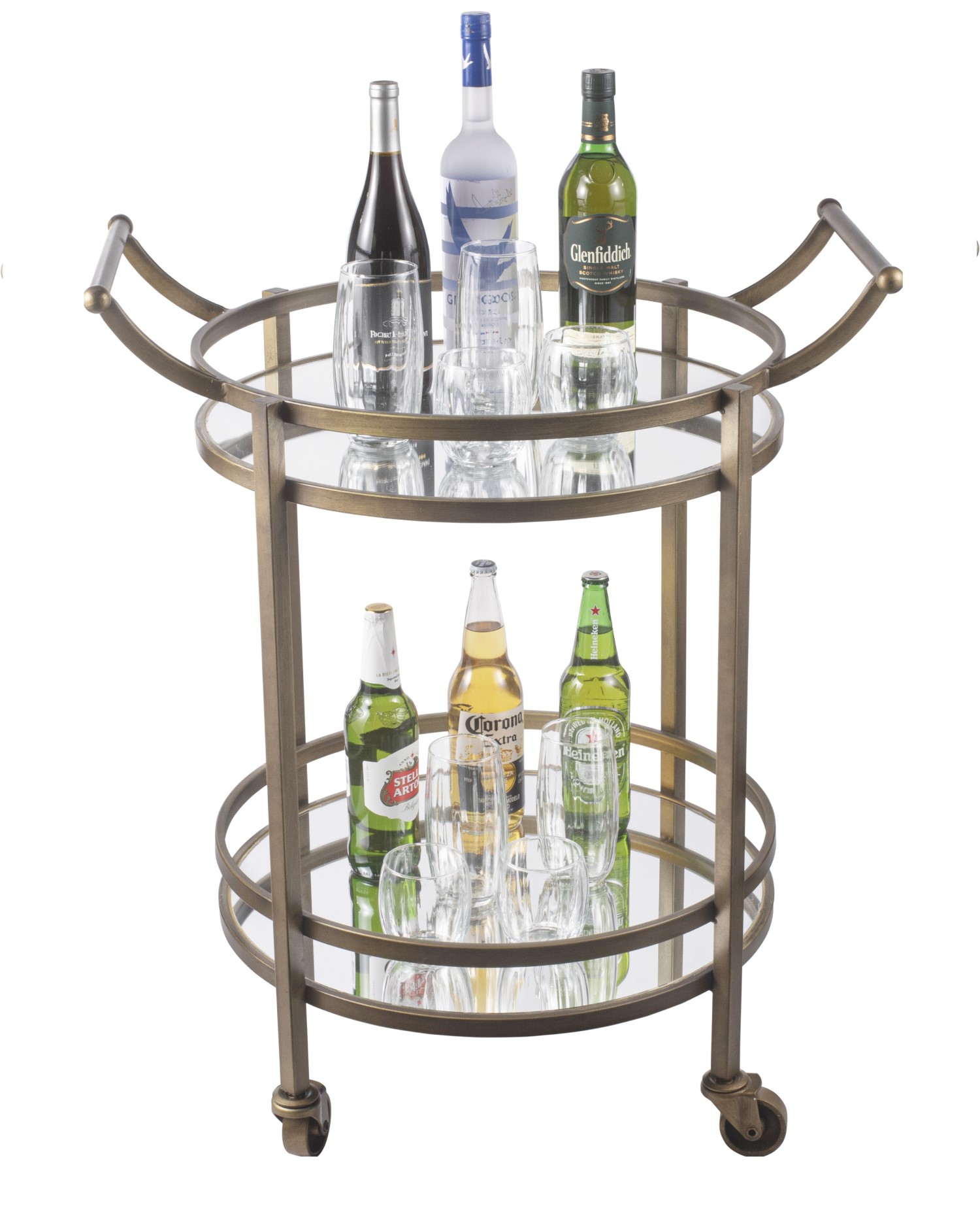 Fun and convenient, this serving cart with 2 tier design shelves provides ample space for a variety of items along with small plates and glasses. The 4 wheels are very flexible and can rotate 360 degrees, allowing you to push or fix the cart effortlessly to meet your daily mobile needs. This contemporary piece will add a decorative look to any living space.